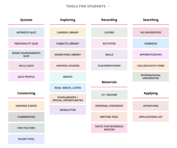 Unifrog is a user-friendly, up to date online careers platform available to students, staff and parents. Unifrog brings together a range of online, interactive tools to support learning for life.